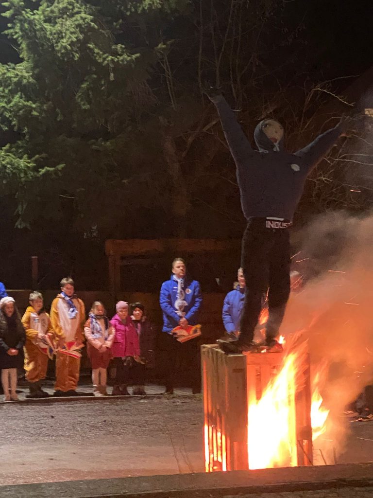 Einige Zuschauer hatten sich bereits vor der Narrhalla versammelt. Ein letztes Mal wurde zusammen geschunkelt und gesungen, bevor die Faschingspuppe feierlich lichterloh verbrannte – ein symbolischer Abschied vom närrischen Treiben der vergangenen Wochen.